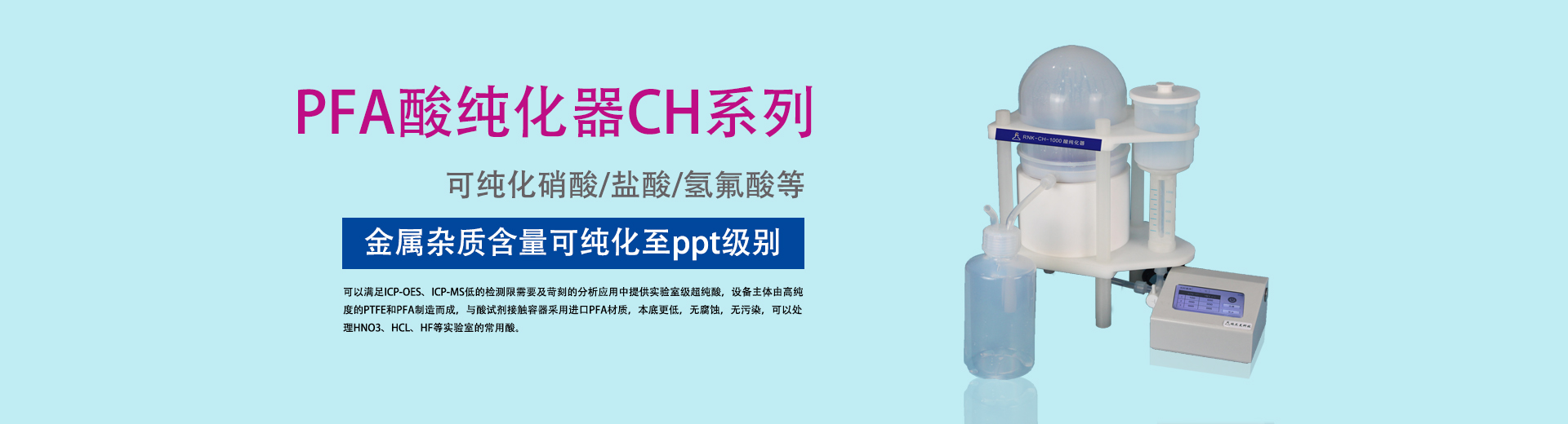 南京瑞尼克科技開(kāi)發(fā)有限公司位于六朝古都南京,邁皋橋創(chuàng)業(yè)園內(nèi),是一家集生產(chǎn),研發(fā),銷(xiāo)售為一體的現(xiàn)代化企業(yè),公司擁有專(zhuān)業(yè)知識(shí)*的技術(shù)研發(fā)團(tuán)隊(duì),整潔明亮的廠房及先進(jìn)的技術(shù)儀器設(shè)備,技術(shù)力量雄厚。公司長(zhǎng)久以來(lái)一直堅(jiān)持以生產(chǎn)研發(fā)高質(zhì)量的痕量分析器皿為目標(biāo),客戶(hù)滿意的實(shí)驗(yàn)需求是我們永遠(yuǎn)的追求。我們一直堅(jiān)持“專(zhuān)注品質(zhì),客戶(hù)至上"為經(jīng)營(yíng)理念,長(zhǎng)久以來(lái)與客戶(hù)建立了良好的合作關(guān)系,在同行業(yè)中建立了自己的信譽(yù)與品牌。公司將一如既往的奮進(jìn)不息,為客戶(hù)帶來(lái)更為舒心的服務(wù)!研發(fā)生產(chǎn):痕量分析器皿—PFA、FEP、PTFE系列產(chǎn)品,高壓消解罐,消解器,水熱合成反應(yīng)釜,酸純化器。...